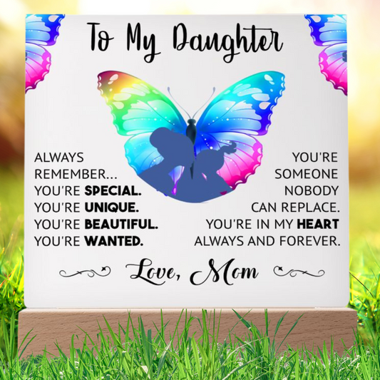 Mother To Daughter Acrylic Square Plaque, Always Remember Your In My Heart Always, Mom Gift, Daughter Gift