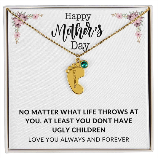 Happy Mothers Day | Engraved Baby's Feet w/ Birthstone | Love You Always and Forever