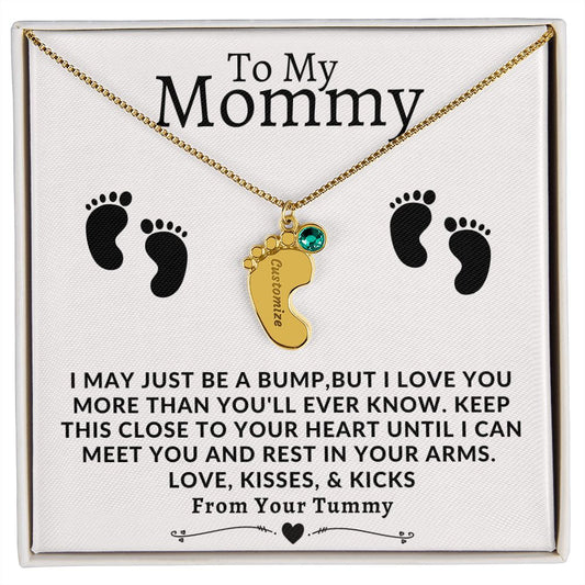 To My Mommy | Engraved Baby Feet with Birthstone | From Your Tummy